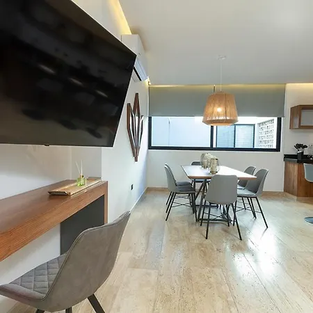 Lägenheten Moderno Depa 2Br Con Alberca En Rooftop 5Ta Avenida Playa del Carmen, som ligger cirka 7 minuter till fots från Kool Beach Club, erbjuder närhet till olika turistattraktioner. Gästerna kan använda Wi Fi för både jobb och nöje.